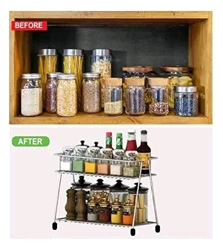 The Kariox Stainless Steel 2-Tier Trolley Container Organizer is a versatile storage solution designed to keep your kitchen, bathroom, or any room clutter-free. Crafted from sturdy stainless steel, it features a smooth, glossy surface and industrial-strength construction for durability. Its two-tier design maximizes storage space, making it ideal for organizing spices, utensils, dishes, boxes, and more. Compact, multipurpose, and easy to move, this organizer provides a stylish and practical solution for home storage.